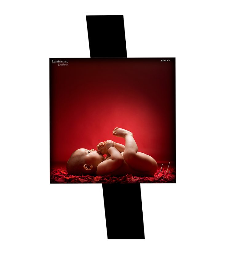 • Metacrilato: 1 fotografía montada en metacrilato de 5mm sobre barra de metacrilato blanco o negro de 10mm.