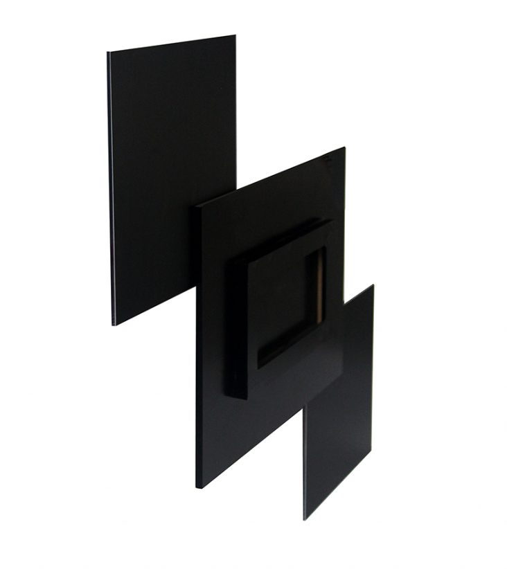Material Madera tipo MDF (DM) de alta calidad, metacrilato Plexiglass Optical (para las fotografías y metacrilato Plexiglass (para los fondos)