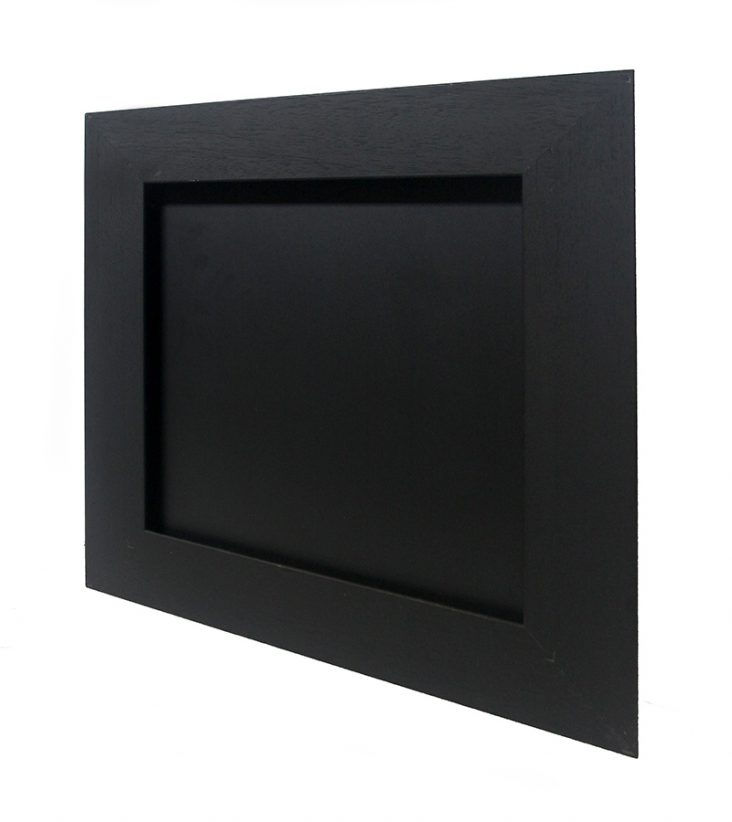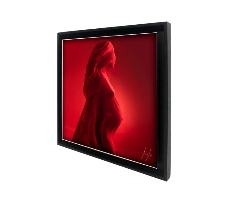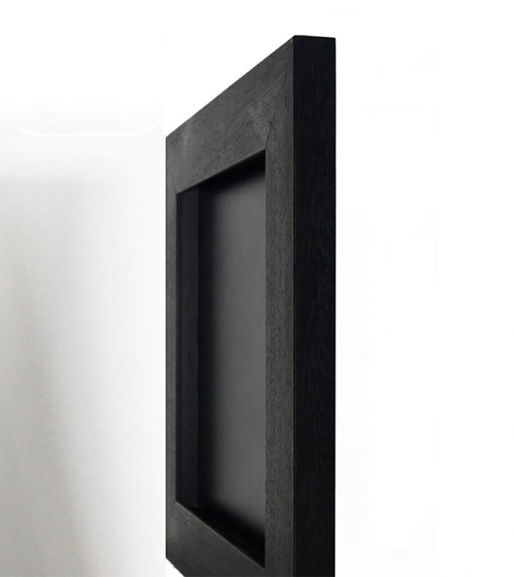 Impresión en papel fotográfico montada sobre madera de color de 4mm y enmarcada con una moldura al estilo “caja americana” de 3.5cm de altura y con 2cm de separación para la que existen 7 colores diferentes.