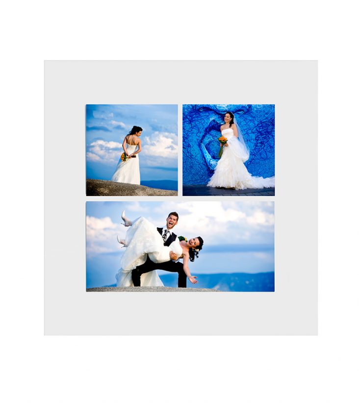 - Madera: 3 fotografías montadas en madera de 8mm sobre fondo de madera de 8mm de color personalizable, sólo disponible para el modelo en 70x70cm.